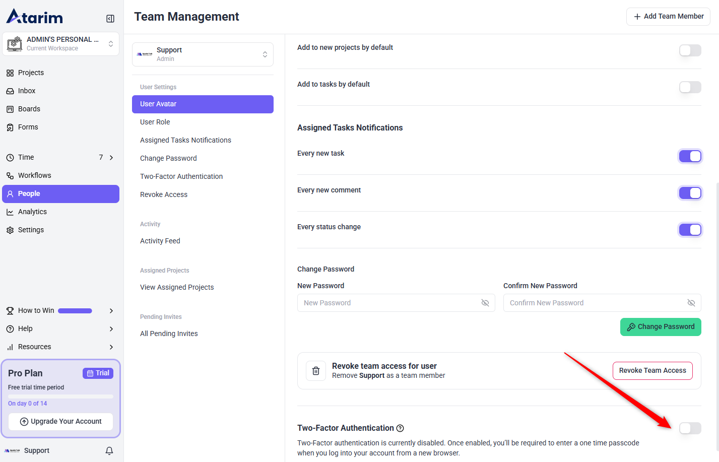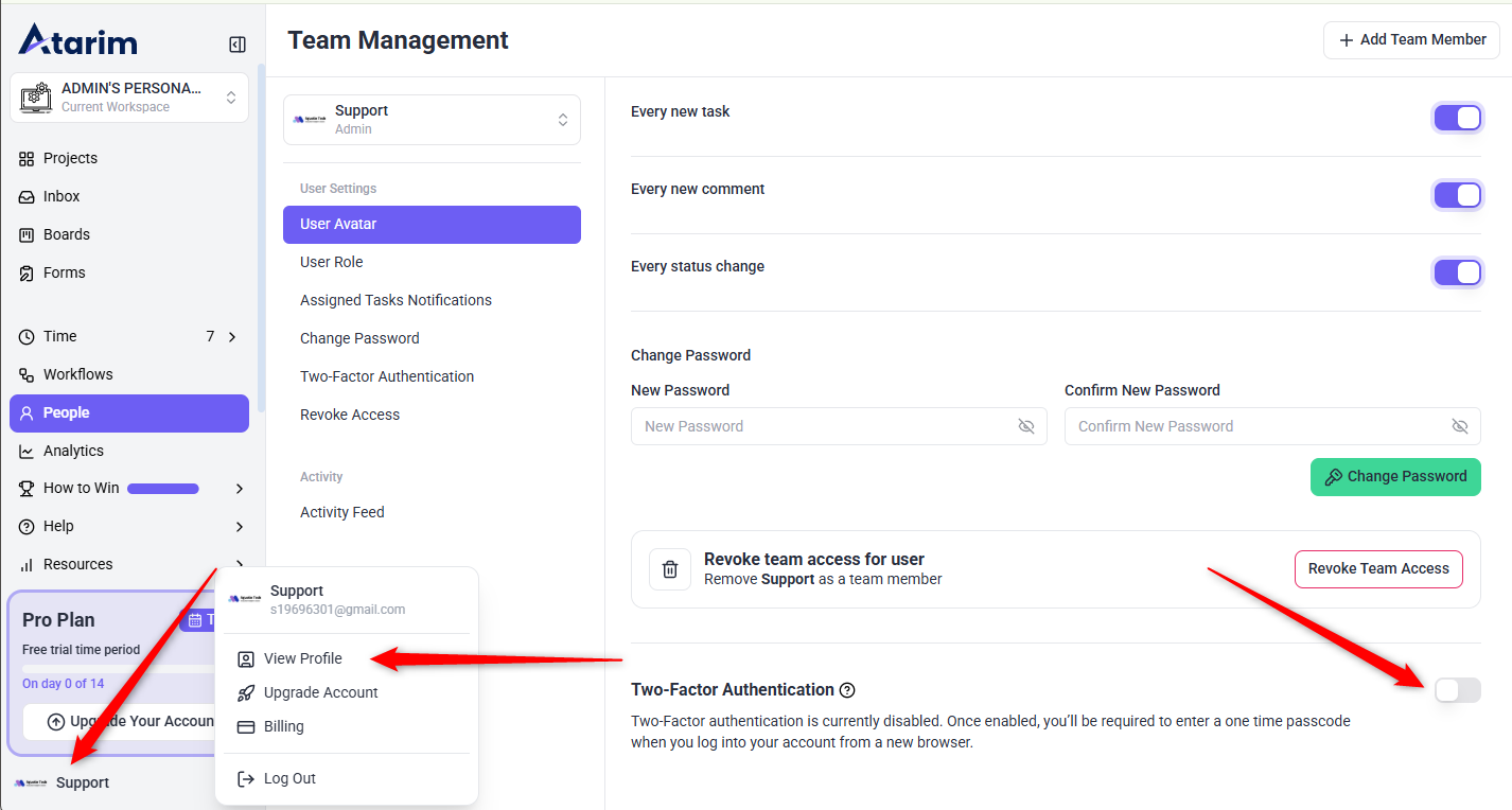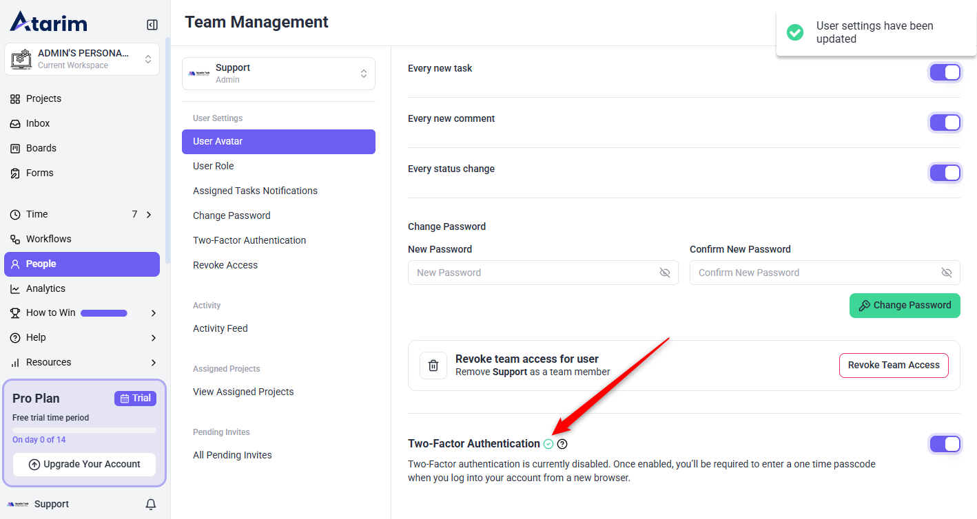 - Return to Atarim’s User Settings page.