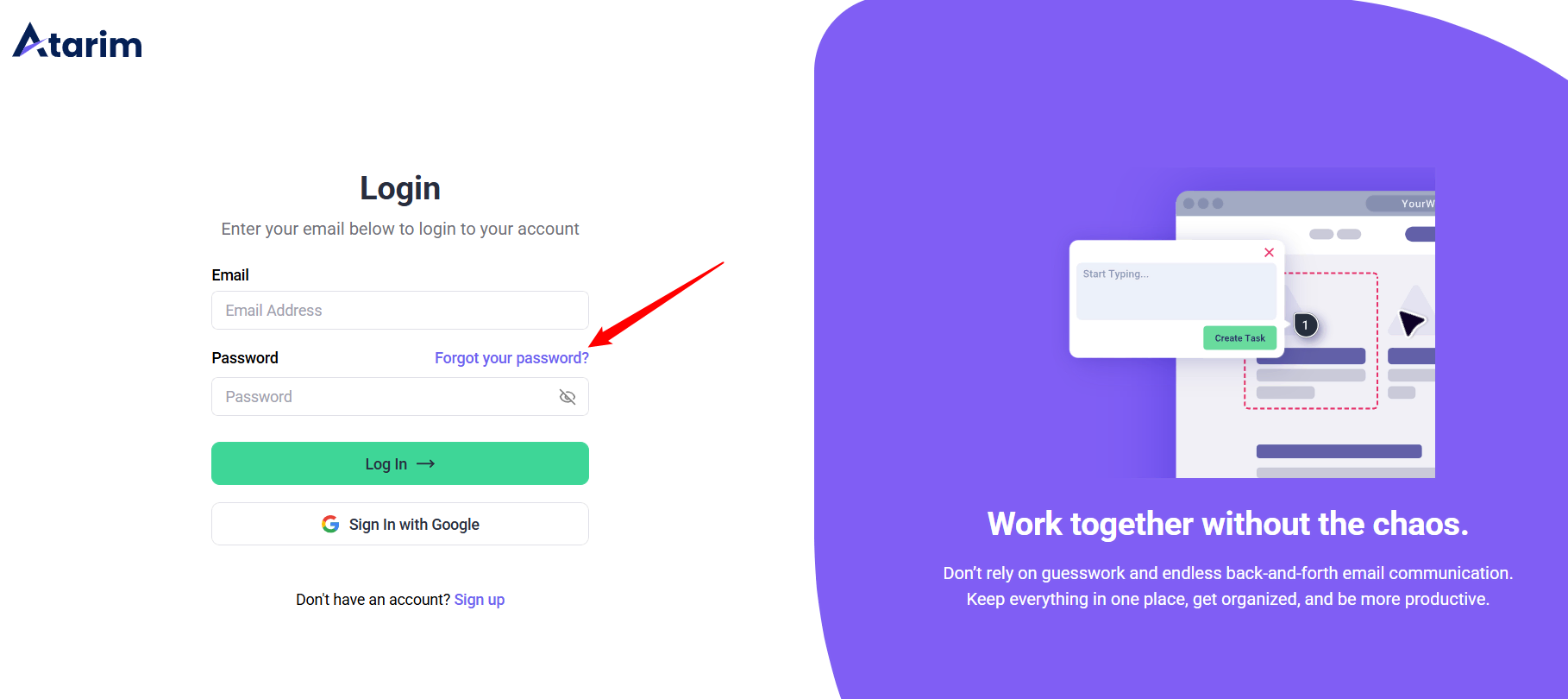 Verify that you are entering the correct email address and password associated with your Atarim account. If you’ve forgotten your password: