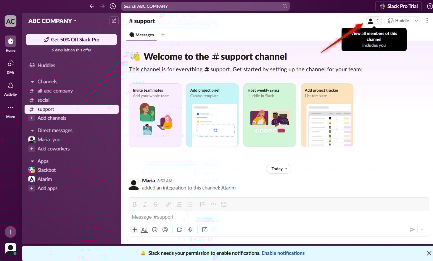 • Add Atarim to any Slack channel (not just the one you connected during setup)