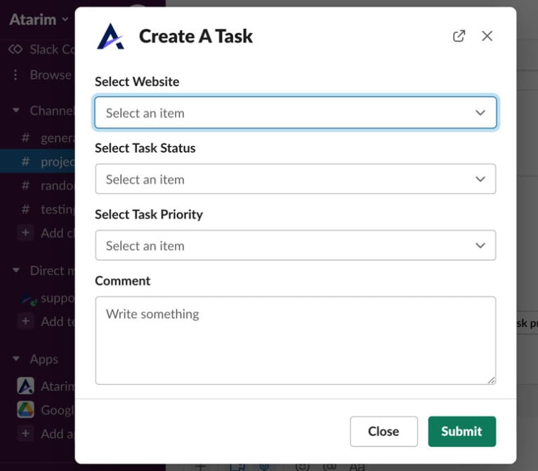 Connect Slack to Atarim and streamline your workflow with task notifications and actionable commands.