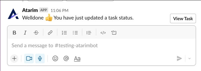You will immediately receive a confirmation message in Slack that the task status has been updated.