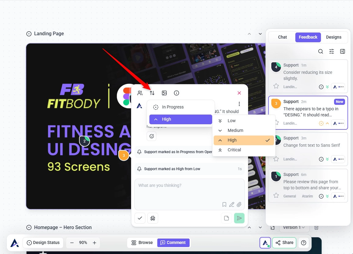 Each design page in Atarim follows a simple review workflow that helps teams move from design to approval without confusion.